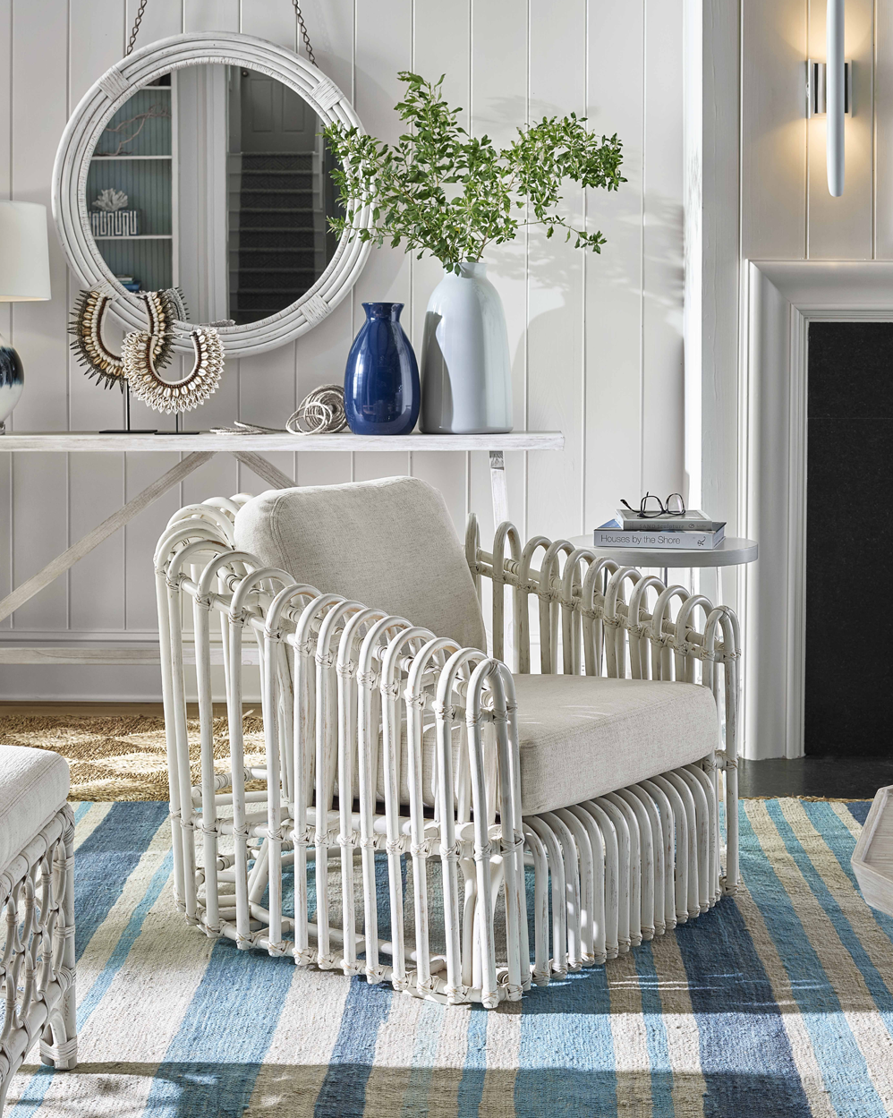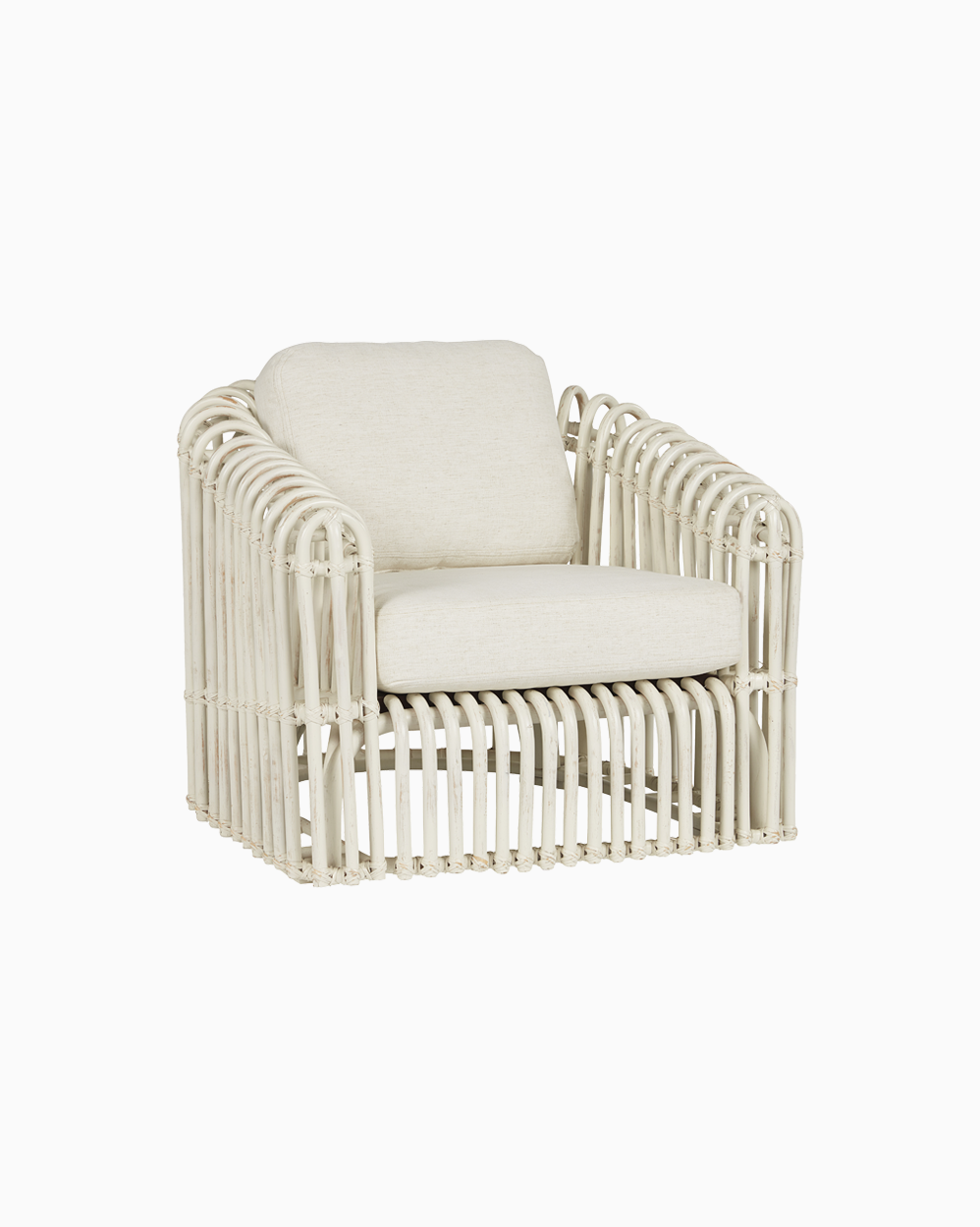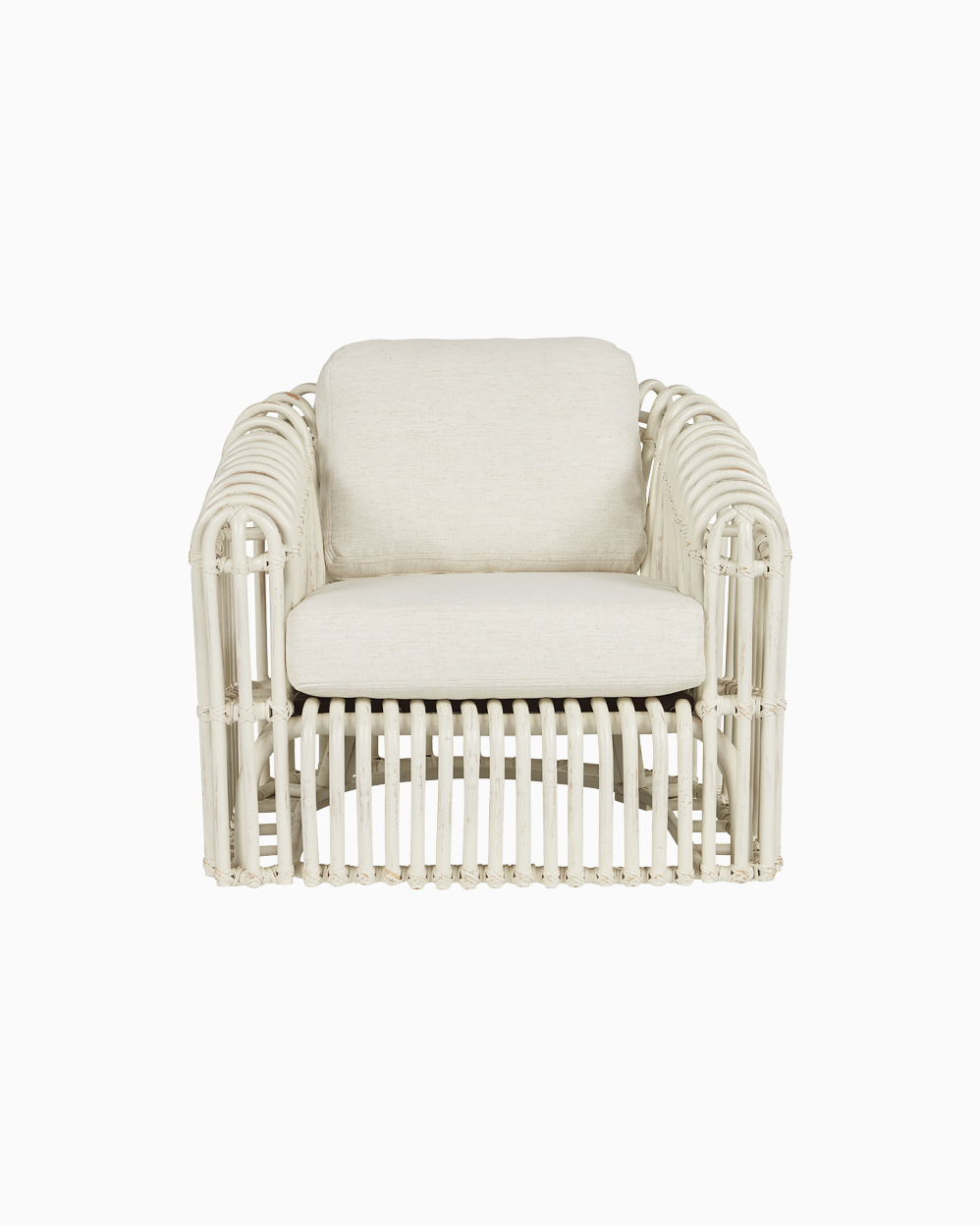 Description: Showcasing a truly inspiring, design-centric silhouette, the Camps Bay Rattan Chair adds unmatched brightness to space with a layered open-air body and plush back and seat cushions.